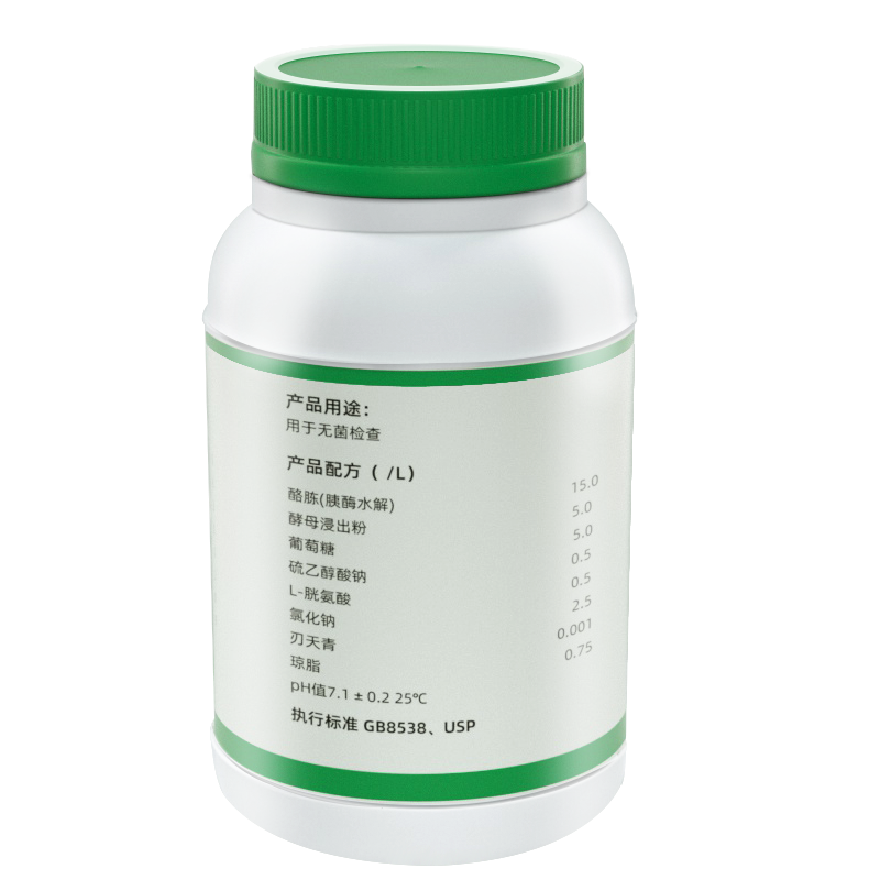 稱取本品 29.25g,加熱攪拌溶解于 1000ml 純化水(shuǐ)中,分裝适宜容器(qì) ,其裝量與容器(qì)高(gāo)度的比例應符合,培養結束後培養基氧化層 ( 粉紅色 ) 不超過培養基深度的 1/2 。121℃高(gāo)壓滅菌 15 分鍾迅速冷卻。在供試品接種前,培養基氧化層高(gāo)度不得(de)超過培養基深度的 1/5 。否則,須經100℃水(shuǐ)浴加熱至粉紅色消失( 不得(de)超過 20 分鍾 ),迅速冷卻 ,隻限加熱一次,并應防止被污染。
